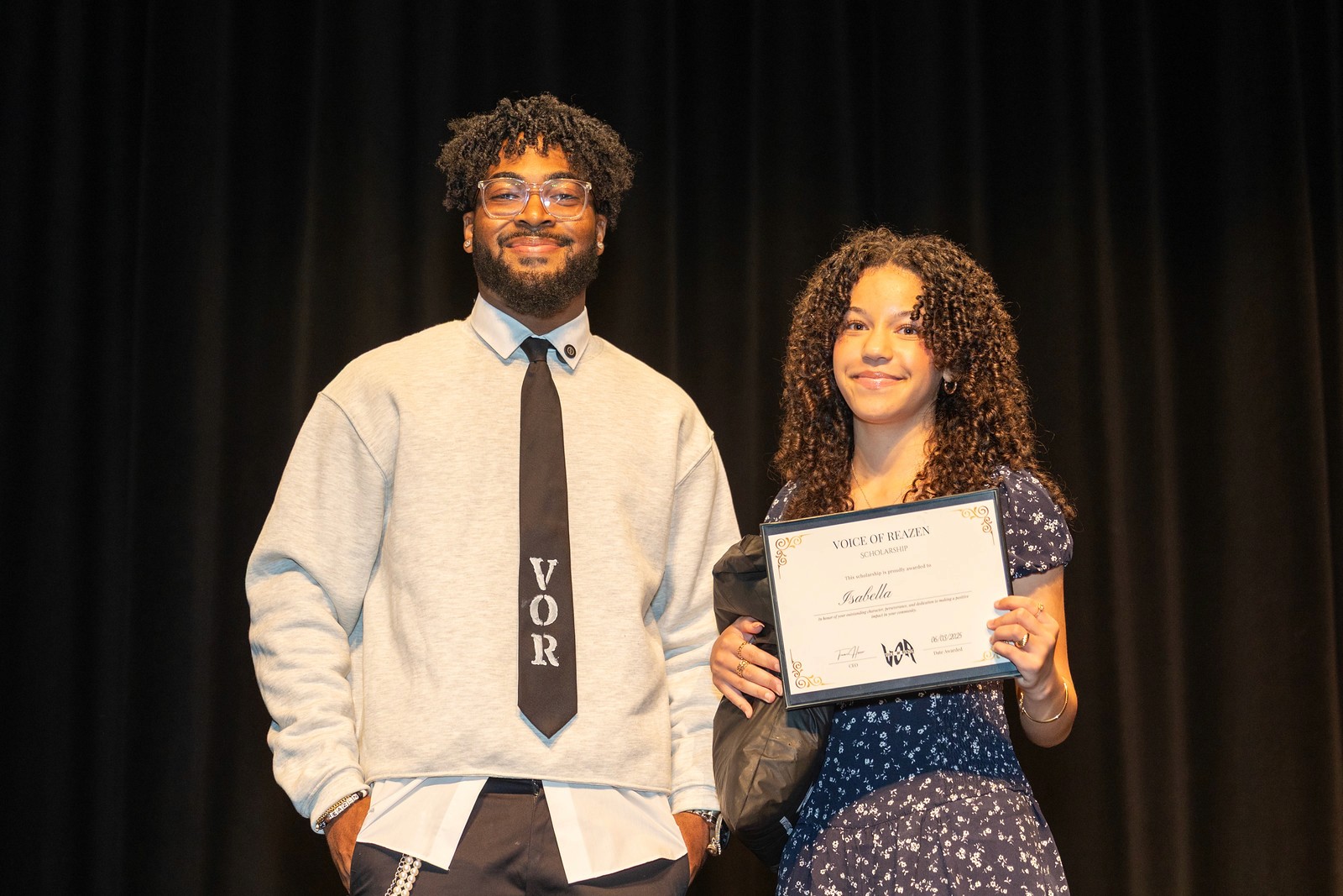Giving back to my alma mater Eastridge Highschool was personal. This is the school that shaped me, and the Voice of Reazen Scholarship is my way of reaching back and investing in the students still walking those halls. I founded and fully funded a $1,500 award for young people who carry the values I built this brand on: authenticity, purpose, and resilience. Because I know firsthand what it means to have someone believe in you before the world does. Recipients are also gifted clothing directly from Voice of Reazen, because I wanted them to wear the brand and feel like they're a part of something bigger than the award itself. Students are considered through written essay or faculty referral, and I select every recipient personally. That part matters to me. The next generation of creatives, thinkers, and leaders who just need people to continue to believe and invest into them and their success.